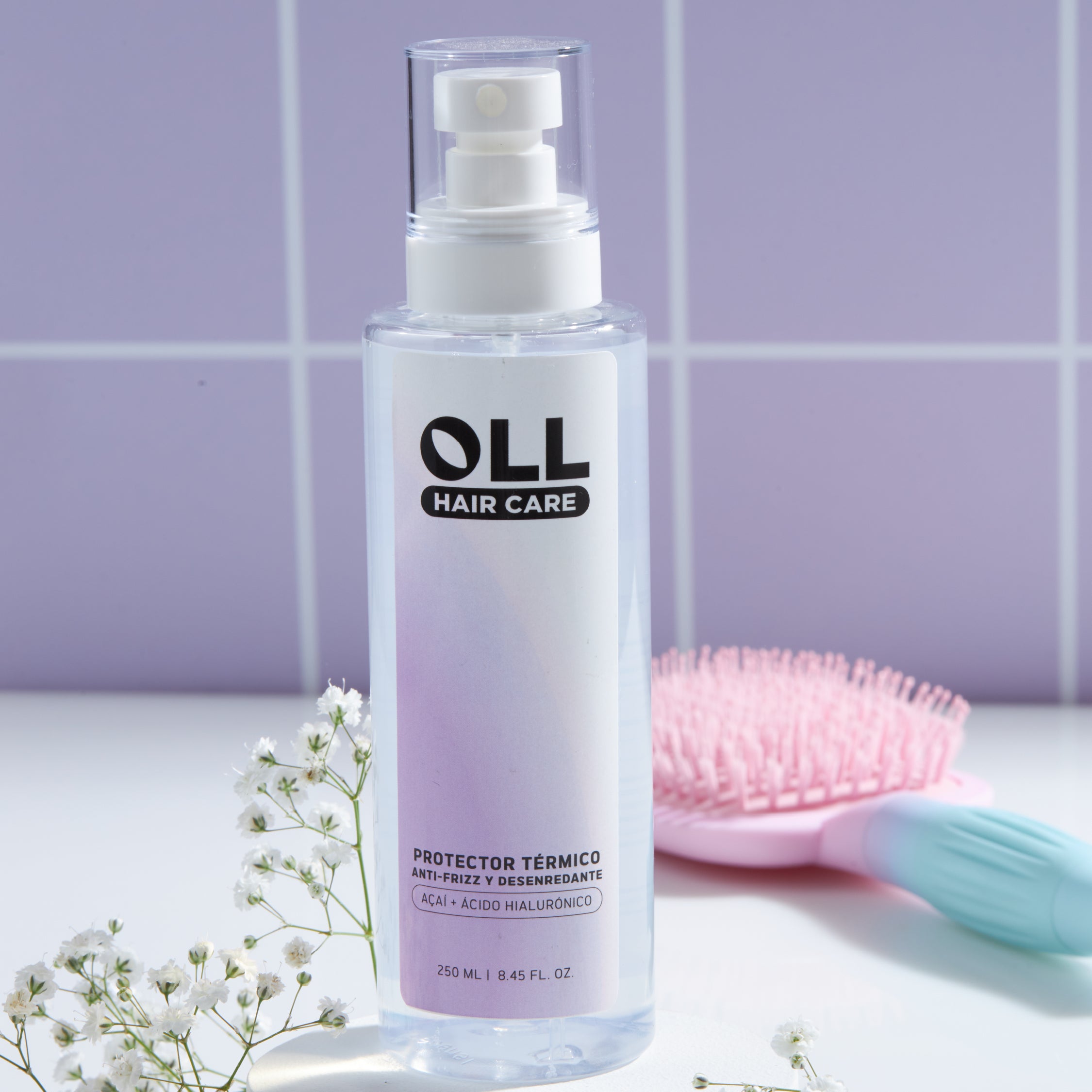 Protege la hebra del calor de planchas, secadores y exposición solar mientras hidrata y suaviza. El ácido hialurónico retiene agua en la fibra; el Açaí aporta antioxidantes que prolongan la salud y brillo del cabello.